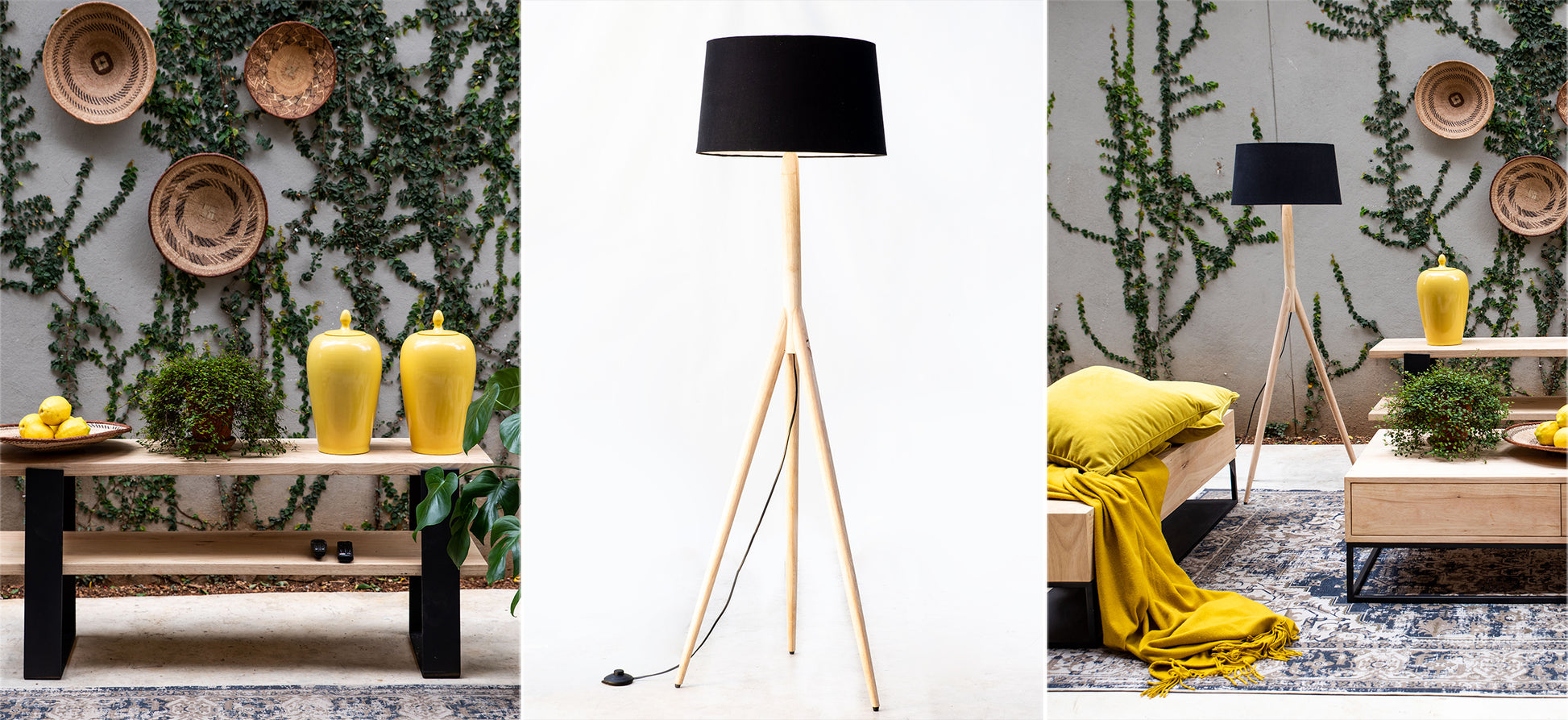 The elegant Trilamp features wooden turned rubberwood legs with a water-based sealant treatment that preserves the wood's natural light tone while providing stain, wear and moisture protection.