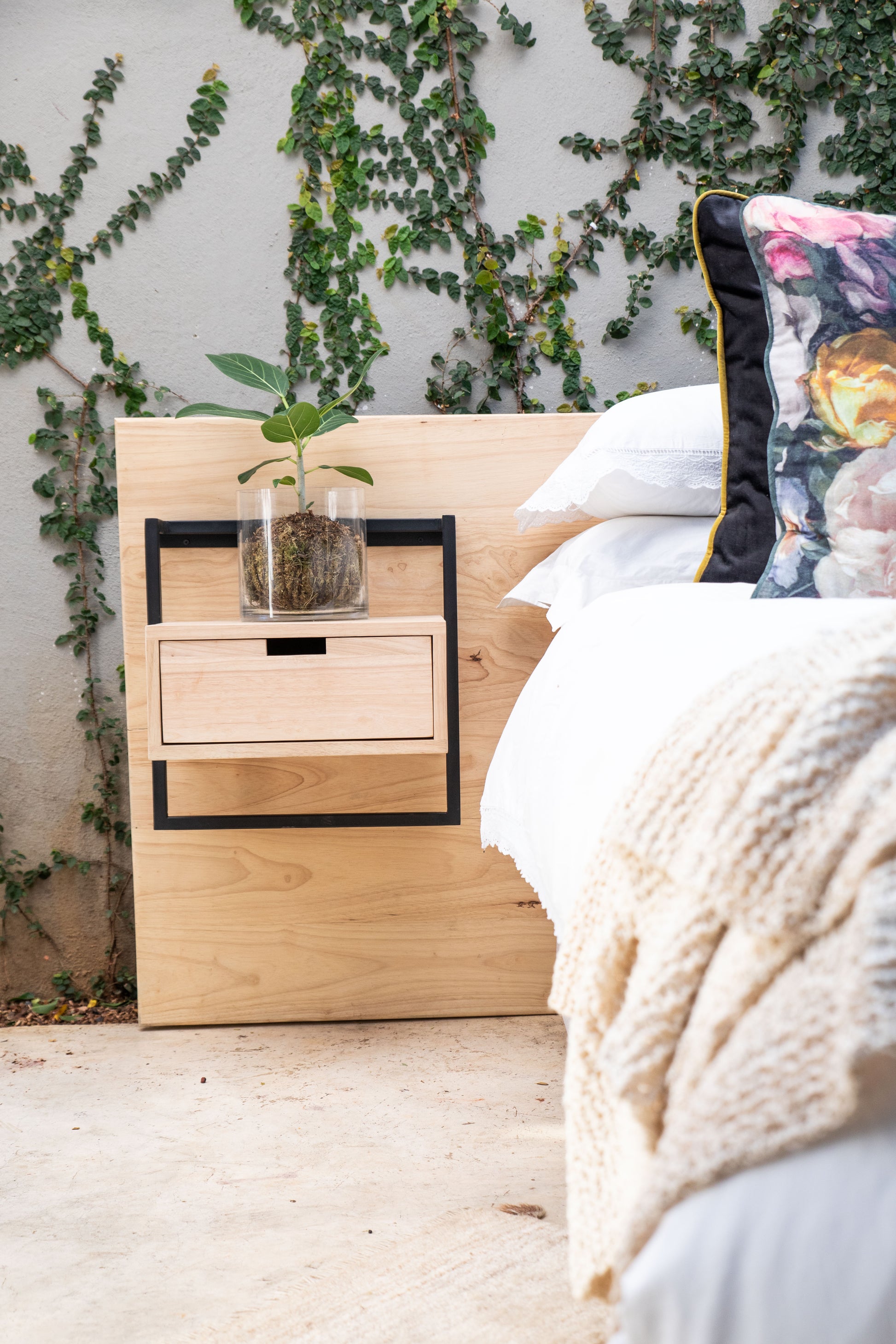 The Wall-Mounted Nightstand features a single rubberwood drawer with a water-based sealant treatment that preserves the wood's natural light tone while providing stain, wear and moisture protection. The steel supports are given a color-durable quality finish by the powder coating, which also makes the surface resistant to fading, chipping, and scratches.